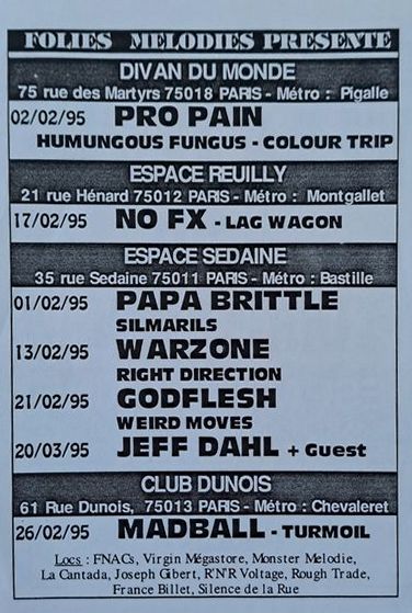 Flyer for Paris show February 02 1995