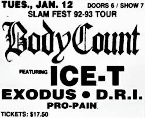 Advertissement January 12th 1993 San Francisco @ The Warfield with Body Count/Exodus/D.R.I.