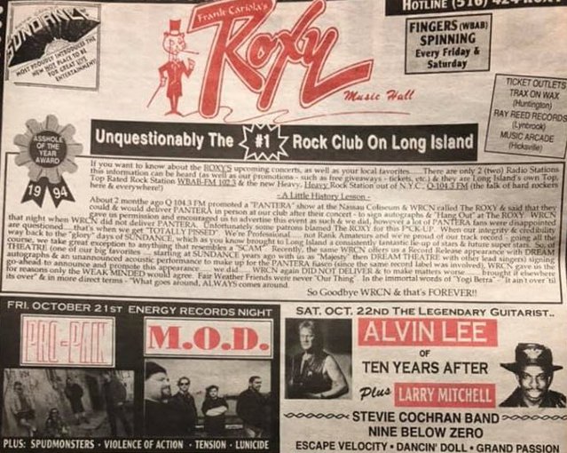 Advertissement October 21st 1994 Huntington @ Roxy Music Hall with MOD/SPUDMONSTERS