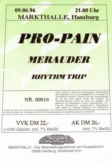 June 9th 1996 Hamburg (Germany) @ Markthalle with Merauder, Rythm Trip