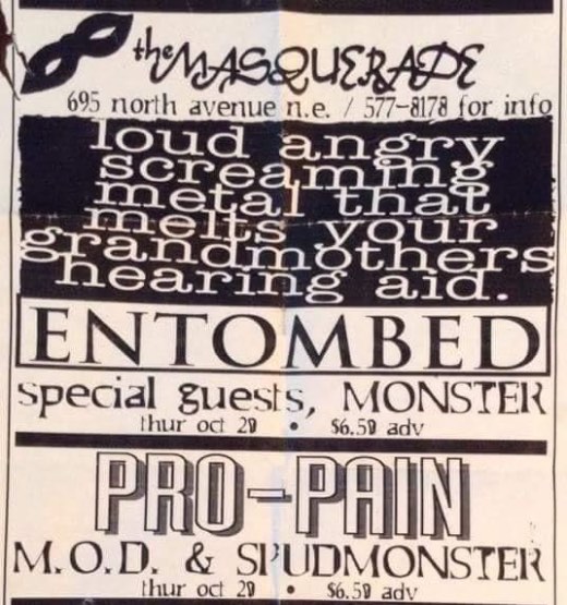 Advertissement September 21st 1994 Atlanta @ Masquerade with Overkill